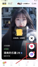 3、在推荐页面,您可以向左滑动来忽略当前展示的用户,向右滑动则代表对该用户表示喜欢;此外,您也能点击页面上的【喜欢】或【聊天】按钮,以此来发起和该用户的沟通互动。