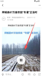 2、采用视频载体呈现本地实时动态,通过直观画面展现拜城的农田风貌、生态环境等场景,增强资讯内容的可读性与吸引力。
