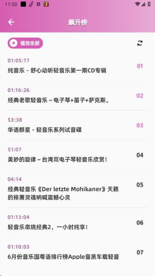 3、支持个性化歌单创建,用户能够自主搭配心仪的轻音乐,同时具备在线播放和离线功能,可适配多样化的场景需求。