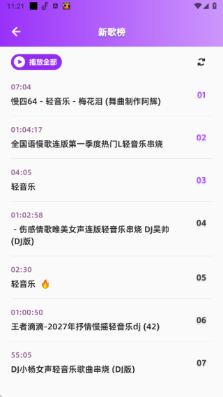 3、通过新歌榜,用户能够了解各类优质新歌,并且可以随时进行收听。