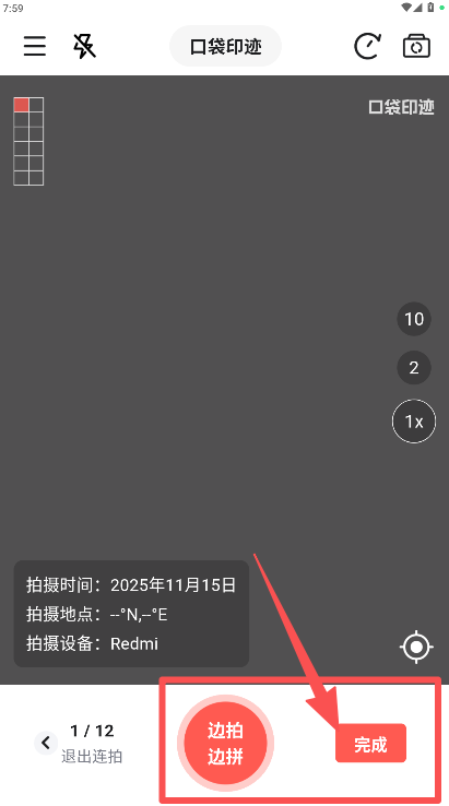 3、进入拍摄界面后点击“完成”按钮,系统会自动合成出最终的拼图。