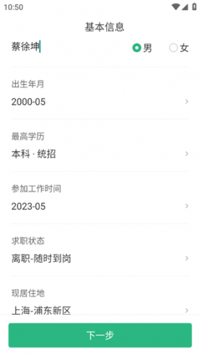 2、按要求填写你的基本信息、求职意向和工作经历等,这关系到后续是否能为您推荐合适的工作。