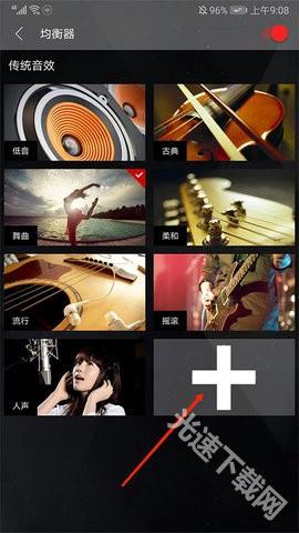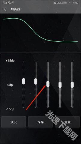 4、进入均衡器界面后,拖动“椭圆”按钮即可完成调节操作。