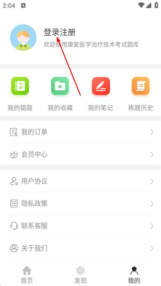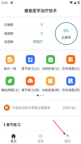 1、启动康复医学治疗技术智题库应用,点击底部导航栏的“我的”选项,进入个人中心界面。