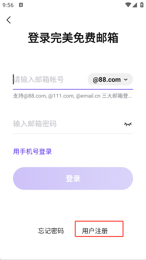 1.安装好完美邮箱手机版后打开,点击下方的登录
