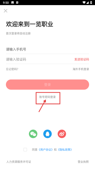 3、在登录选择界面,点击“账号密码登录”选项,即可进入账号密码登录页面。