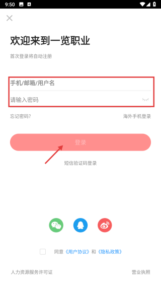 4、进入账号密码登录界面后,依次输入账号与密码,随后点击登录按钮,即可完成账号登录流程。