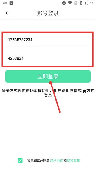 4、在【账号登录】页面输入对应的账号和密码,点击【立即登录】按钮即可完成登录操作,请注意此登录方式仅用于市场审核场景。