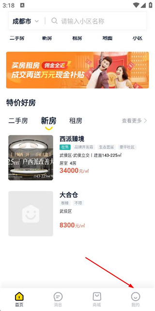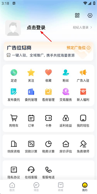 1、在房产首页点击底部的“我的”选项,即可进入个人中心页面。