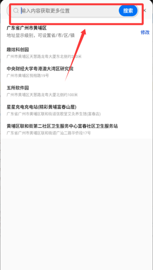 4、先把定位名称输入搜索即可选择。