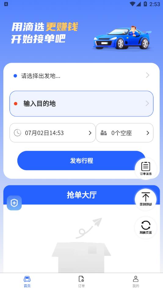 2、进入平台后,你既能够接单,也可以前往抢单大厅参与抢单。