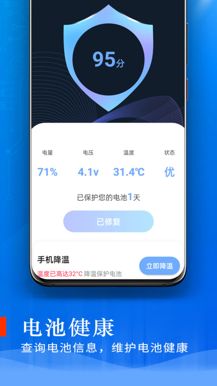 2、用户可随时查看手机电池的温度与电压情况,以此优化电池状态;