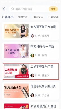 3、于乐器弹奏课程列表页面中,挑选【二胡零基础入门课】,随后进入该课程的详情页面。