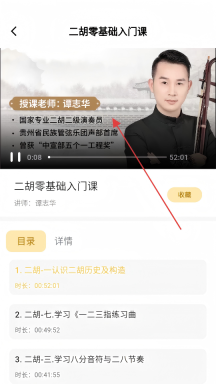 4、进入【二胡零基础入门课】的详情页面,就能开启该课程的学习之旅了。