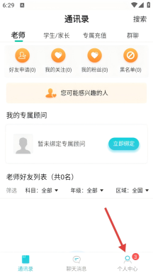 1、在通讯录页面点击底部的【个人中心】按钮,即可进入账号功能管理界面。