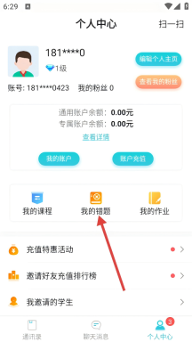 2、在个人中心里找到【我的错题】选项,点击进入错题本功能模块,即可对各学科的错题进行管理。