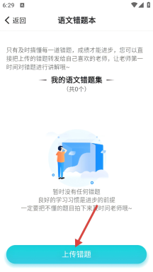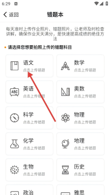 4、点击页面底部的【上传错题】按钮,即可启动语文错题的拍照上传流程。
