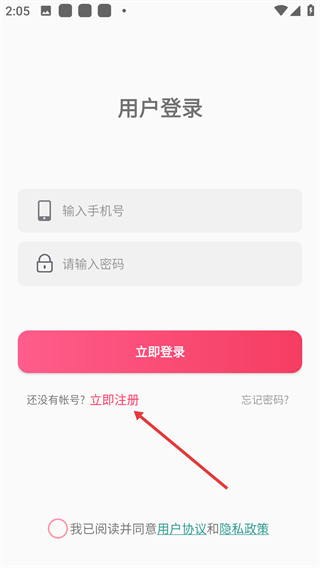 1、用户可先进入登录页面,若需注册则点击【立即注册】按钮开启注册流程;若已有账号,直接填写信息登录即可。