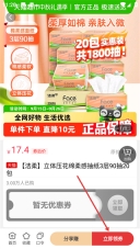 3、在抽纸的商品列表页面,挑选你想要的目标商品(例如【洁柔】立体压花棉柔感抽纸),点击该商品即可进入其详情页面。