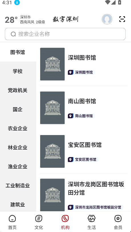 3、机构板块集中呈现图书馆、学校、党政机关、国有企业以及工业制造单位的相关信息,方便大家查询资源和掌握机构动态。