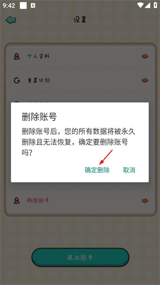 4、在确认提示框中点击确定删除,即可完成账号注销操作。