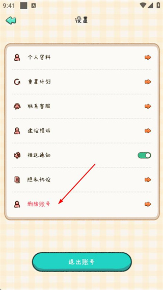 3、进入设置页面后,点击“删除账号”选项,此时会弹出账号删除的确认提示框。