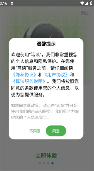 1. 完成安装后,点击页面右上角的“跳过”按钮,就能进入下一个页面;