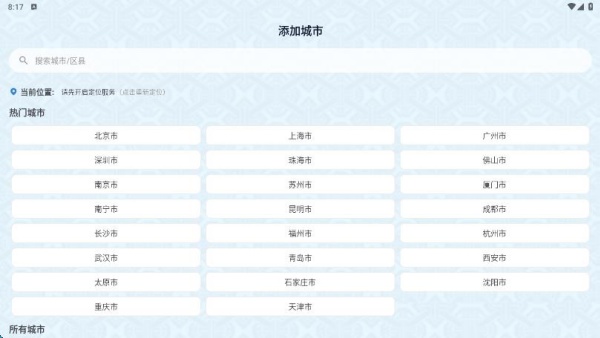 安装完成后进入应用,首次使用时需先确认城市位置,这样才能获取天气数据。