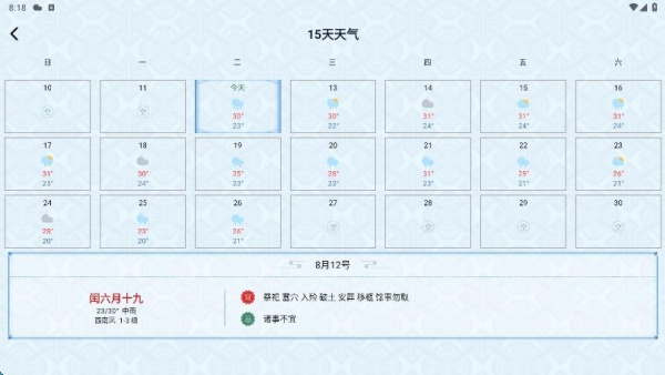 3、点击主页的“查看更多”功能,即可获取未来半个月的气象信息。