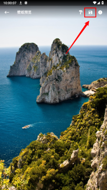 4、进入壁纸详情页点击右上方箭头所指保存图标。