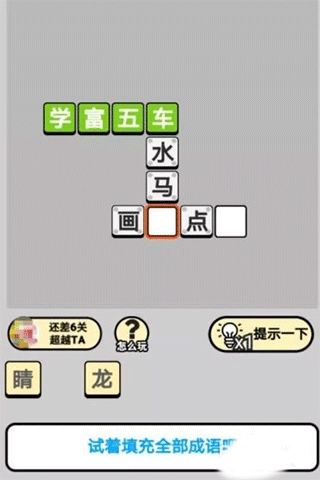 5、操作简便,只需把屏幕下方的字填入空格,组成正确的四字成语就行。