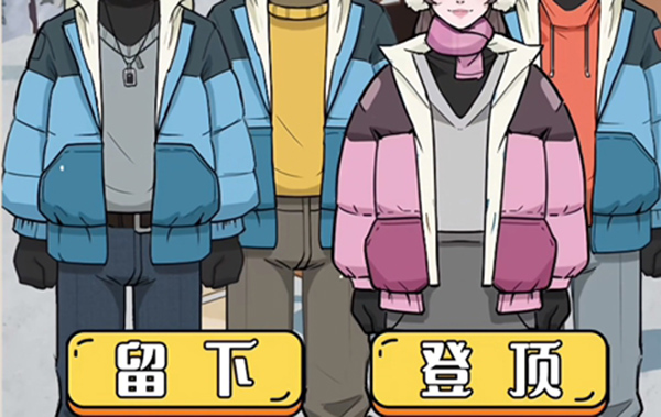 1、第一个选项有着留下以及登顶这两个选择,选择留下。