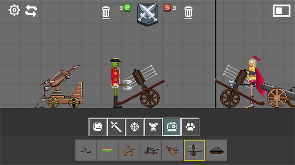3既然已经有了对战角色,接下来该做什么呢?点击第二个宝剑样式的图标,为他们装备武器,开启一场真正的较量吧!