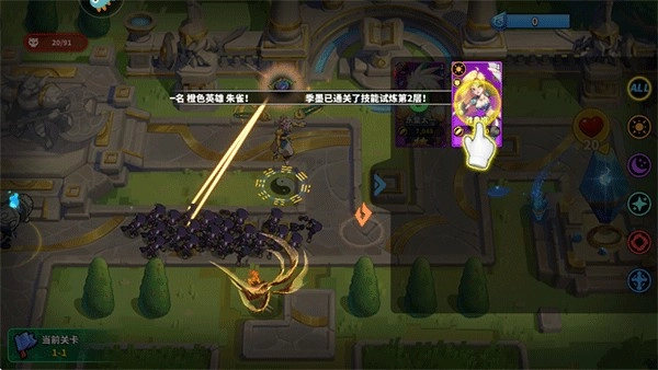 4、大批敌人即将来袭,已放置的英雄会自动对敌人发起攻击,玩家只需运用策略,合理安排英雄的站位、选择攻击方式并把握攻击时机。