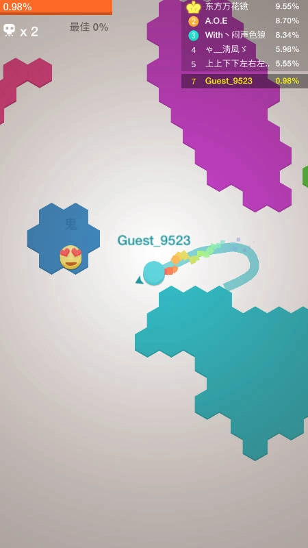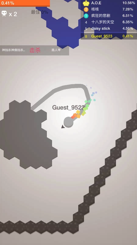 8、当察觉到敌人正在划线时,可主动截断其路径,将敌人淘汰,顺势吞并其领地。还能佯装撤退,以此引诱对手追击,随后猛然转向,反向切入进行击杀。