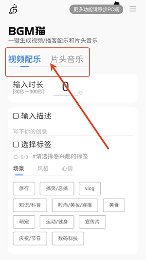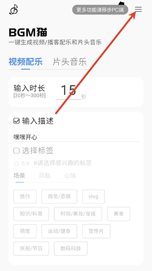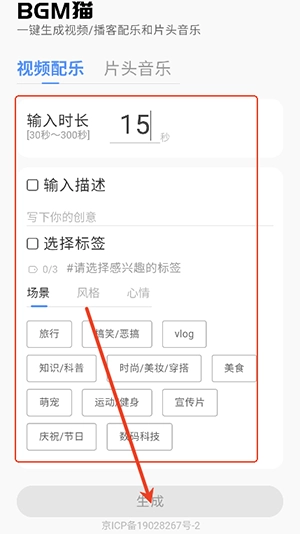 在主页,您能够输入任意一段描述,或者挑选几个标签,接着输入所需的音乐时长,点击“生成”,就能获取一段相应的BGM。对于每一个生成的BGM,您还能进一步调整高潮点的位置,以满足您更为细致的需求。