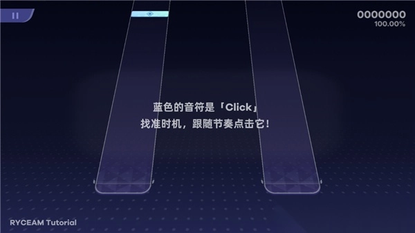 2、之后是蓝色音符,玩家只需要找准时机,根据节奏点击它即可;
