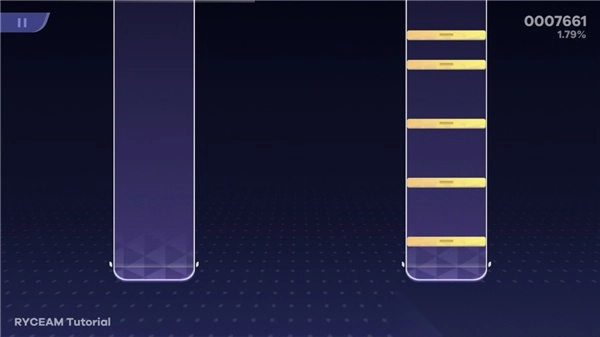 1、如下面所示为轨道,当玩家点击轨道时,轨道会呈现高亮显示状态,随后各类音符将在该轨道中下落。