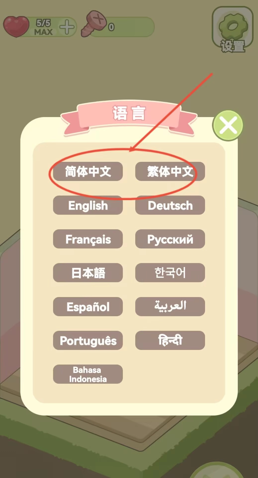 1. 点击主界面右上角的齿轮图标,进入设置菜单,然后在语言选项列表里选择中文标识,如此便可完成语言切换。