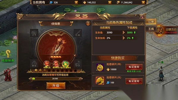 5、如意、玉佩、暗器、龙珠、羽毛、宝石是游戏中提升自身实力的重要途径,日常打怪和材料副本可以获得升级材料,一-定要注意提升,大幅提升自身鱼色的属性
