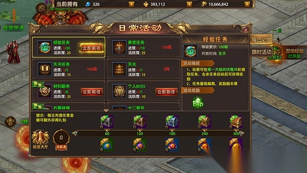6、每日的日常任务必做,这是获取各类升级材料的基础途径;参与限时活动也会有不错的收益
