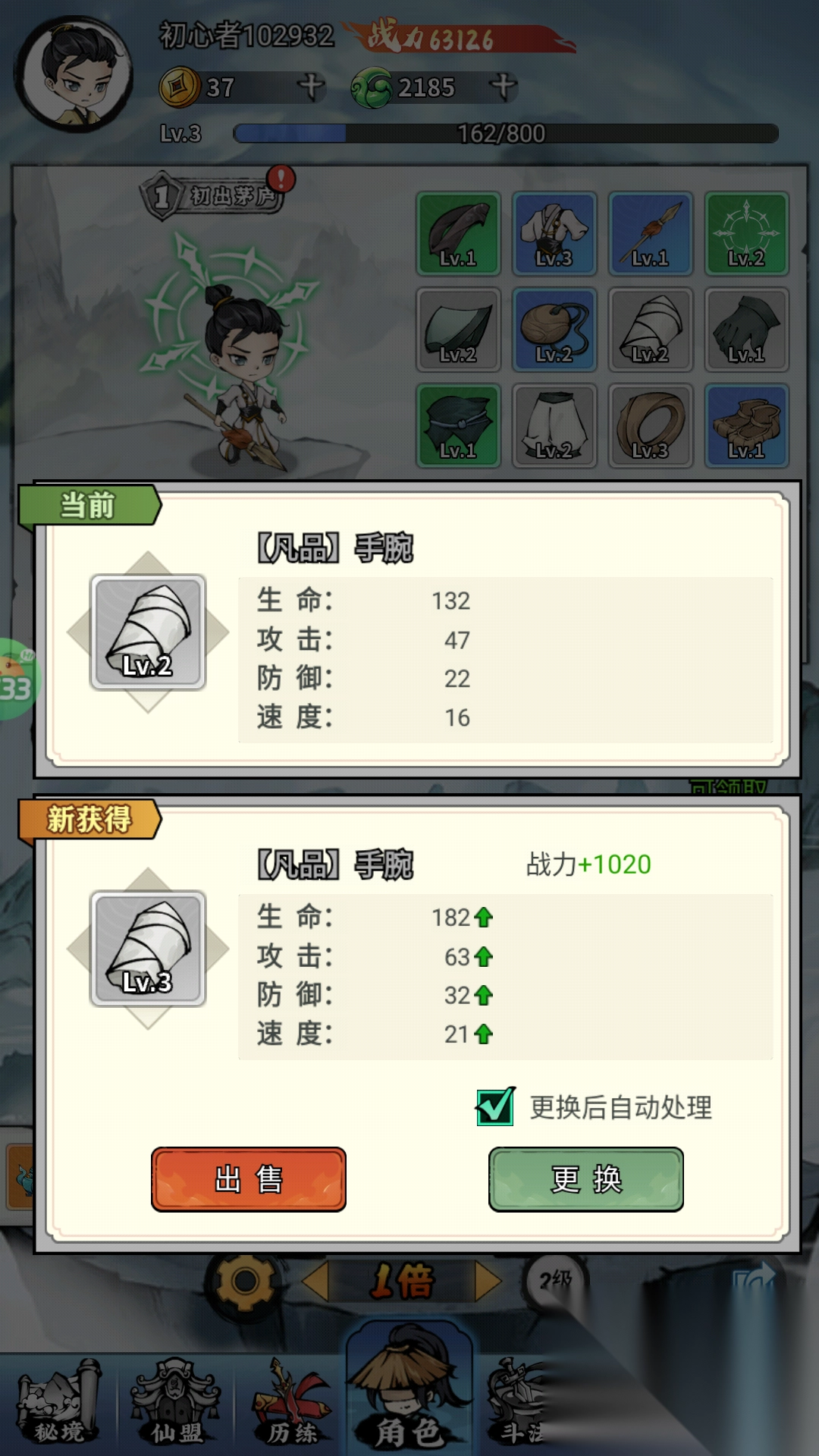 2、打造出来的装备好的直接换上,不好的直接出售。