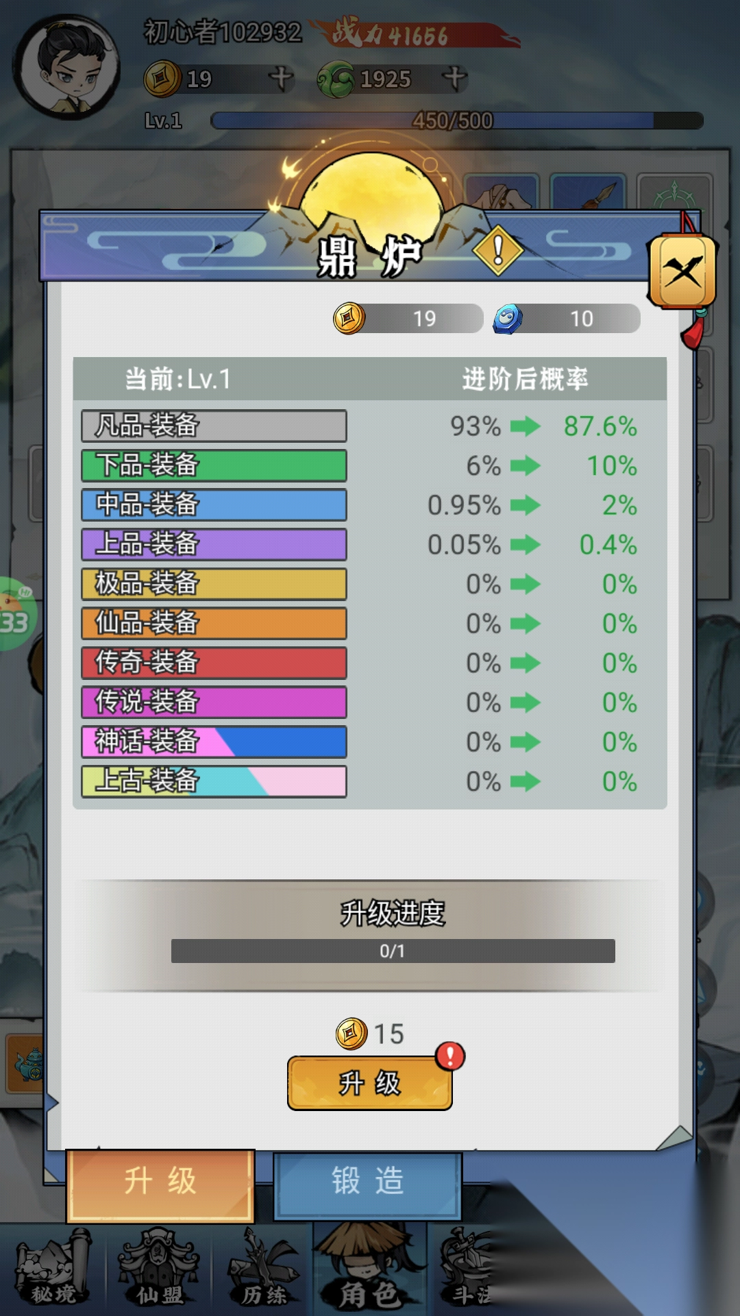 4、点击炉子下方的等级标识,即可对鼎炉进行升级操作,从而提升稀有装备的爆率。