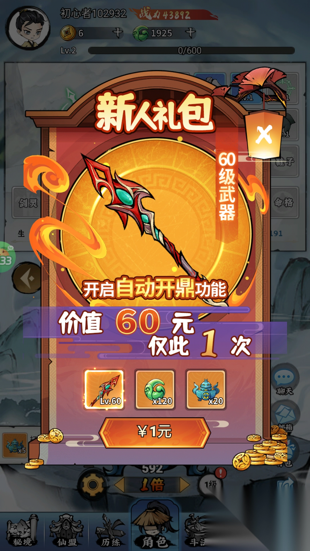 6、如果条件允许,推荐宝子们购买这个新人礼包,仅需1元,就能在前期大幅提升你的战力。