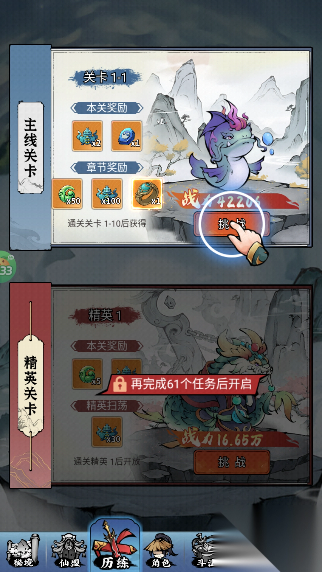 7、当完成特定任务后,点击下方的“历练”按钮,即可开启历练。