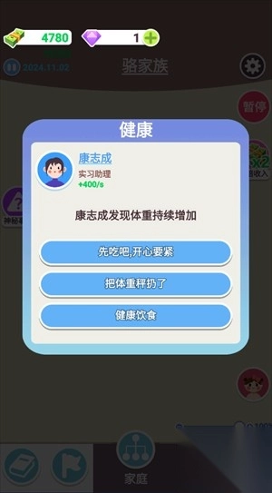 3、家庭成员到达一定数量,可以解锁更多的功能,行业,故事。