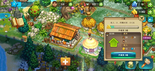 3、升级小屋,可以提高收入,以及增加人员的入住。