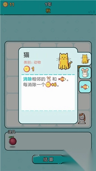 6、猫咪能够清除相邻的老鼠与鱼,每完成一次消除操作,即可获取六枚金币。