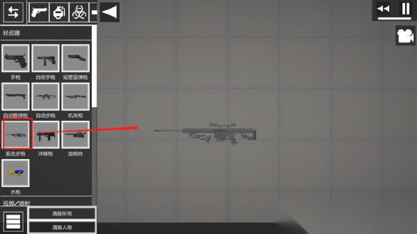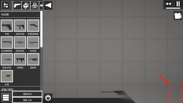 6、还可以添加很多武器,点击枪械,武器会直接出现在你的手上,这个时候点击枪支就能开枪;