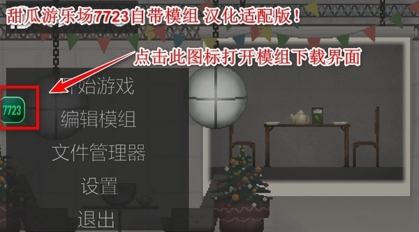 1强烈推荐下载甜瓜游乐场7723自带模组汉化适配版!唯有这个版本,在打开游戏时会出现7723图标,只要点击该图标,就能轻松搜索并下载模组。